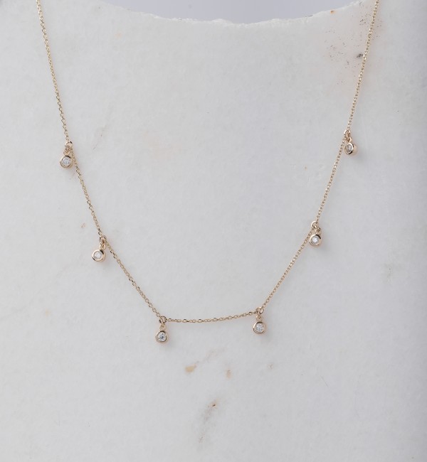 Μενταγιόν περιμετρικό με κρεμαστά μονόπετρα σε λευκό χρώμα.