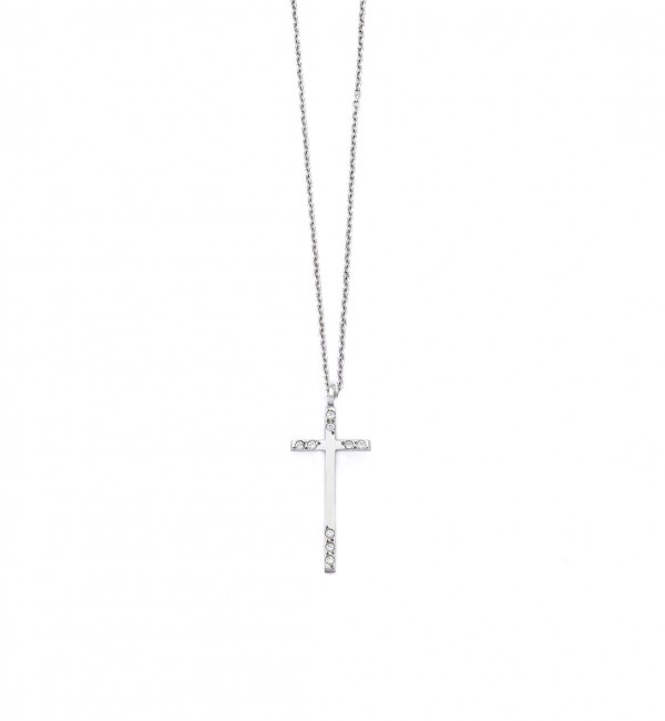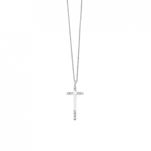Μενταγιόν με μακρύ σταυρό και στις γωνίες του λευκά ζιργκόν.